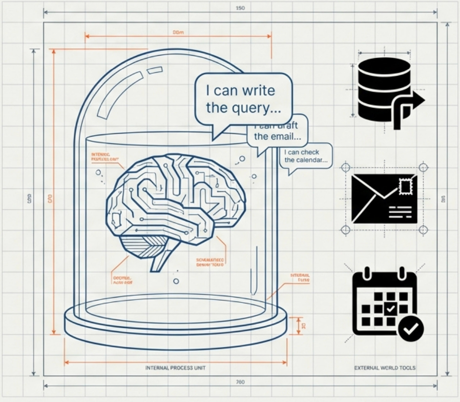 Here’s what nobody tells you about large language models upfront: they can’t actually do anything on their own. They can generate text, follow instructions, and write code, but they can’t execute that code or interact with external systems. They can’t check calendars, send emails, query databases, or trigger any real-world actions. They’re sophisticated text prediction engines trapped in a sandbox, which is both a feature for safety and a limitation for utility.